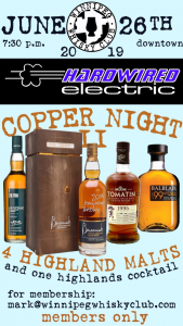 Winnipeg Whisky Club 4th Club Night June 26, 2019 featuring Four Highland Single Malt Scotch Whiskies! Contact mark at mark@winnipegwhiskyclub.com